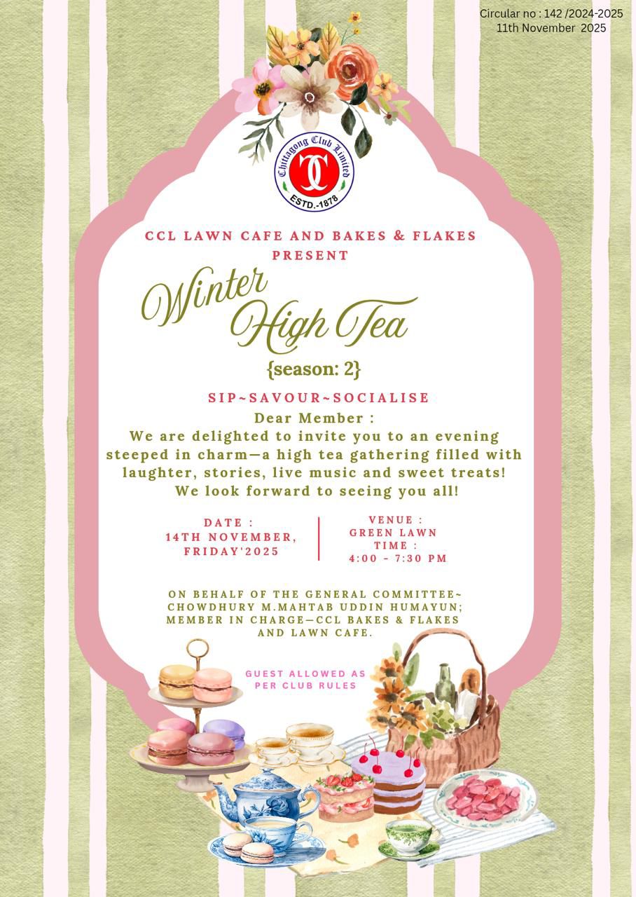 Home/Club Circulars/CCL Lawn Cafe & Bakes & Flakes Winter High Tea 2025 Club Circulars CCL Lawn Cafe & Bakes & Flakes Winter High Tea 2025 Facebook X LinkedIn Tumblr Pinterest Reddit VKontakte Share via Email Print