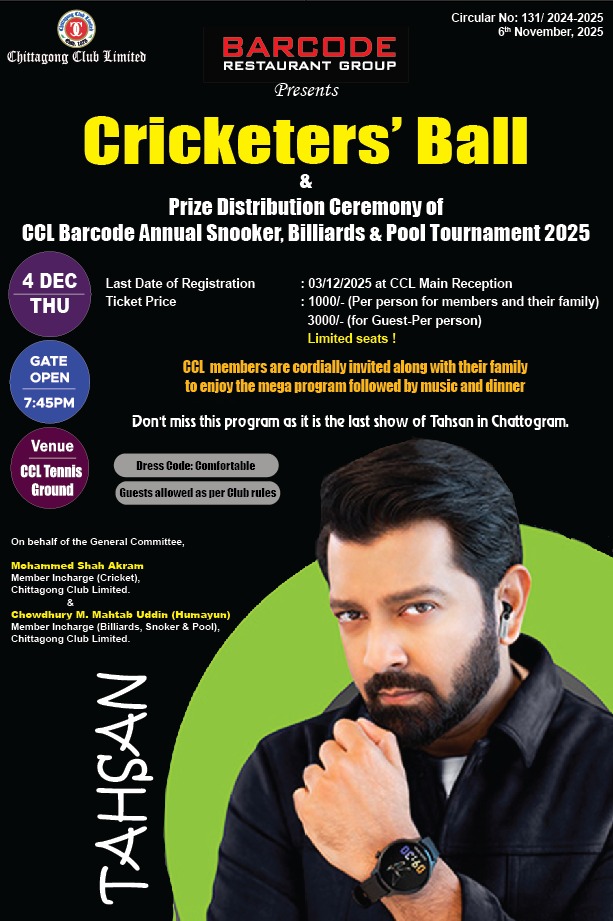 Home/Club Circulars/Cricketer’s Ball & Prize Distribution Ceremony of Annual Snooker, Billiards & Pool Tournament 2025 Club Circulars Cricketer’s Ball & Prize Distribution Ceremony of Annual Snooker, Billiards & Pool Tournament 2025 Facebook X LinkedIn Tumblr Pinterest Reddit VKontakte Share via Email Print